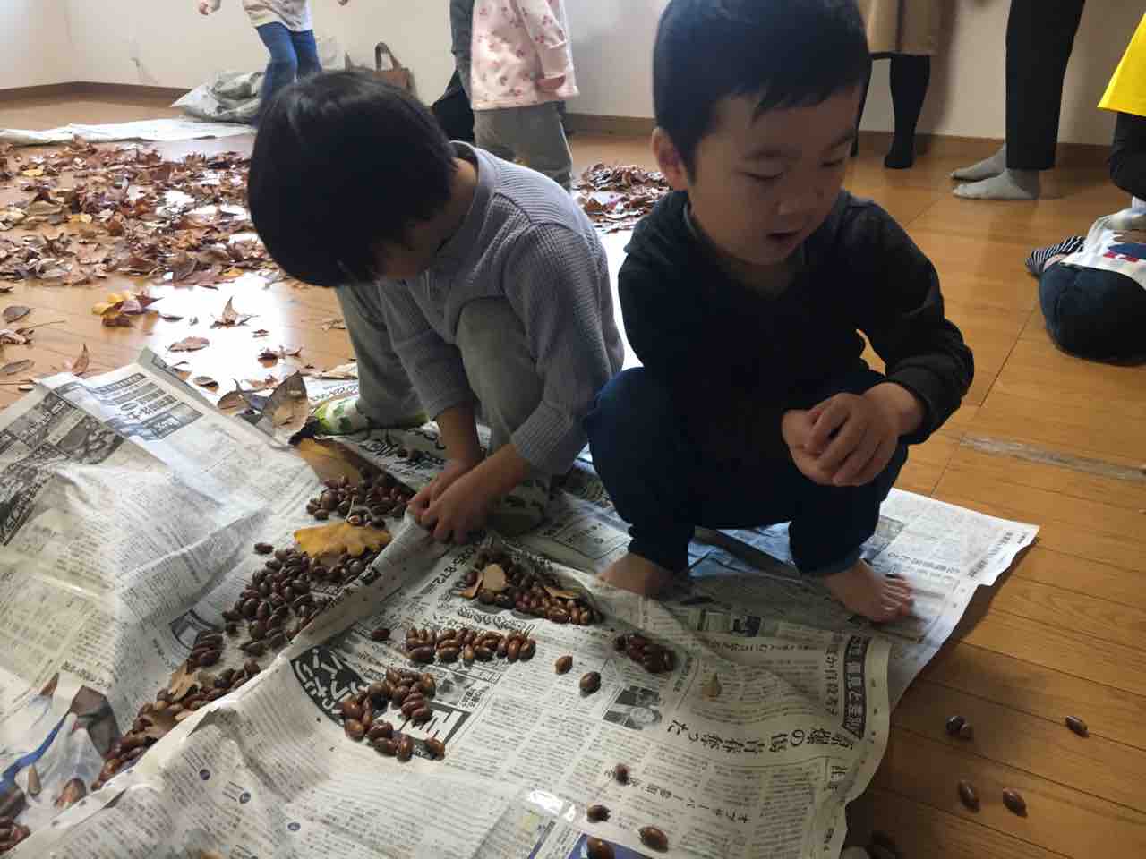 先日、落ち葉🍂とどんぐりで遊びをしました!